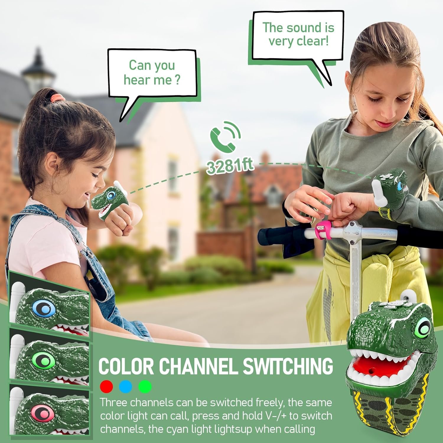 Dinosaur Walkie Talkies for Kids 2 Pack Camping Gear T-Rex Outdoor Toys for Boys Girls Age 3-12 Year Old 3 Channel Long Range Birthday Gifts Christmas Stocking Stuffers
