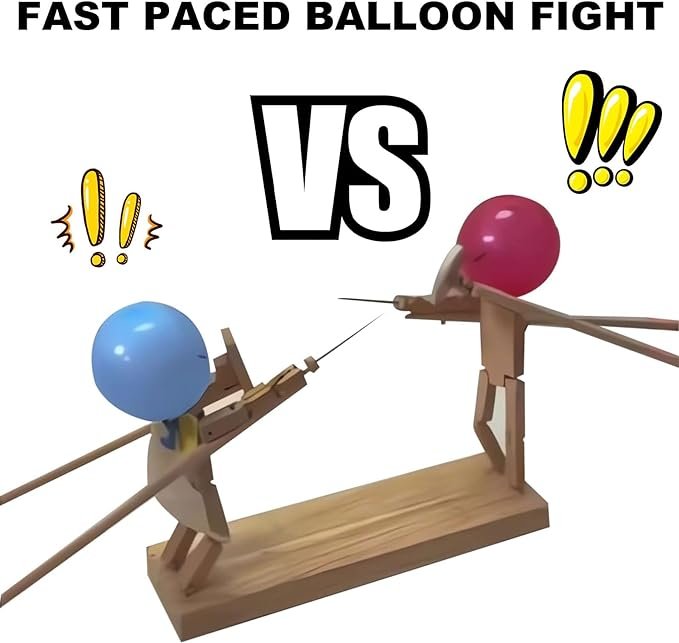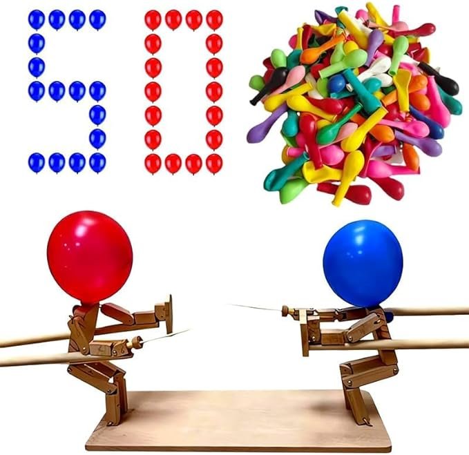 Balloon Bamboo Man Battle: Handmade Fencing Puppets Game for 2 Players, Fast-Paced Balloon Fight with 20 Balloons, Whack a Balloon Party Games, Battle Bots Toys for Kid Adult Boy Children Friend