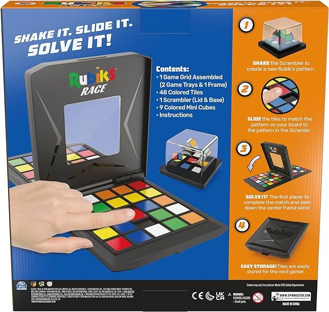 Rubik’s Race, Classic Fast-Paced Strategy Sequence Brain Teaser Travel Board Game Two-Player Speed Solving Face-Off, Easter Basket Stuffers, Packaging May Vary, for Adults & Kids Ages 7+