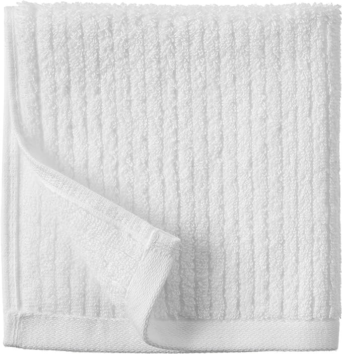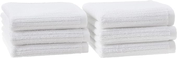 Amazon Aware 100% Organic Cotton Ribbed Bath Towels – Washcloths, 6-Pack, White