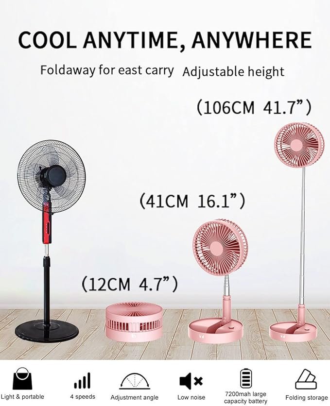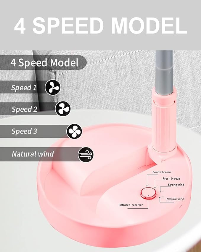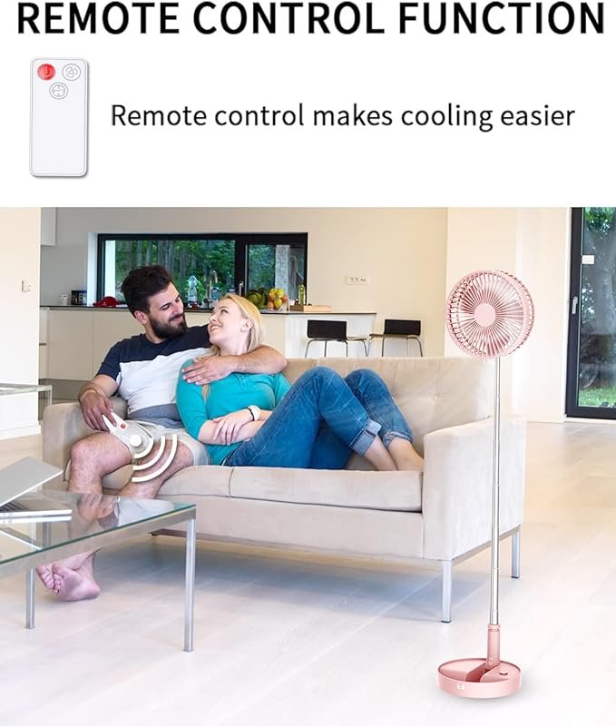 UN UNITEDTIME Desk and table fan, foldable Fan Portable Travel Fans Battery Operated,Adjustable Height My Foldaway fan with remote Control Timer, 4 Speed Settings (Pink)