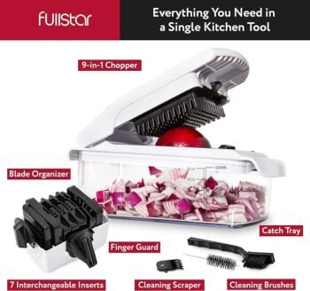 Best functionality on the market – Everything you need are all in our all-in-one multipurpose cooking gadgets. 7 easy to change inserts including two different sized chopper blades and two spiralizer inserts give you the option of broad ribbons or thin spirals. Our vegetable choppers make nifty cooking gifts for women and men.