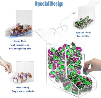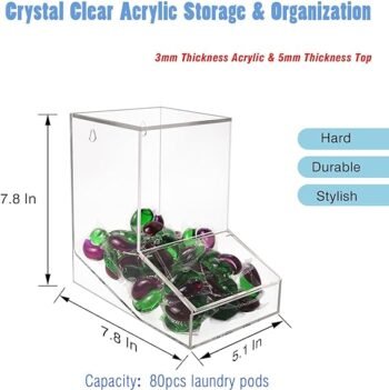 Gnjoyxuan Laundry Pods Dispenser, Dishwasher Pod Holder Acrylic Coffee Pods Holder Candy Dispenser for Home kitchen, Wall-Mounted