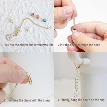 Horsdo DIY Stanley Cup Letter Charm Set,2 pcs Charm Chains and 200pcs Letter Beads, Name ID Personalized Handle Charm for Stanley Tumbler