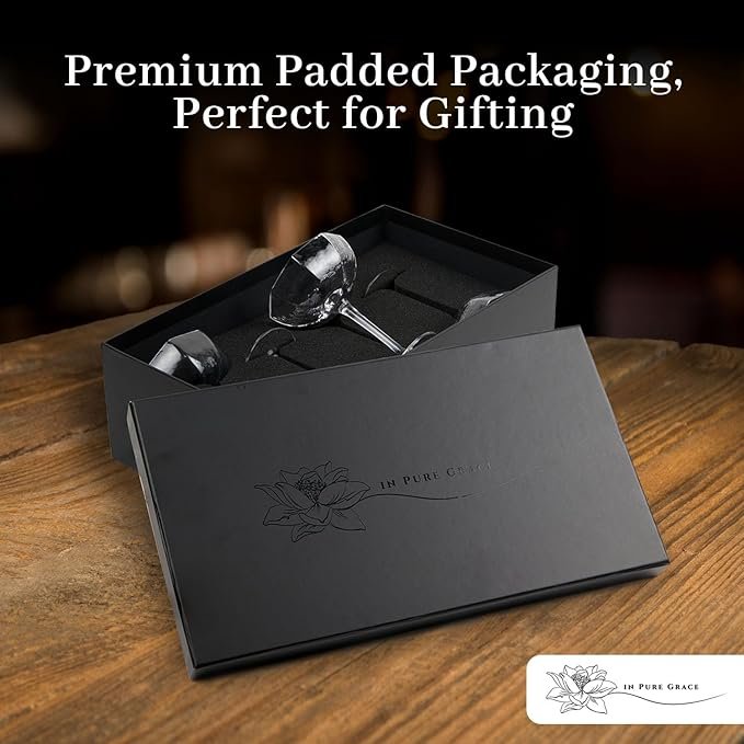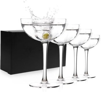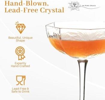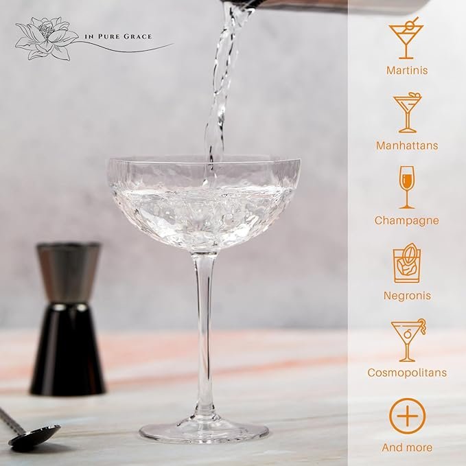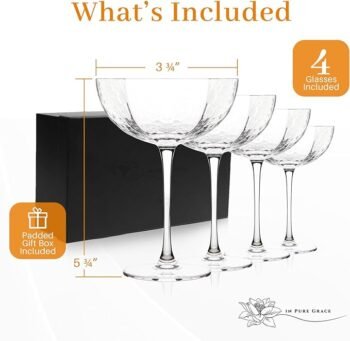 In Pure Grace Crystal Coupe Glasses Set of 4 – Hand Blown Cocktail Glass with Elegant Stem – Vintage Champagne Saucer – Glassware Sets for Daiquiris, Manhattan, Mocktail, Desserts and More