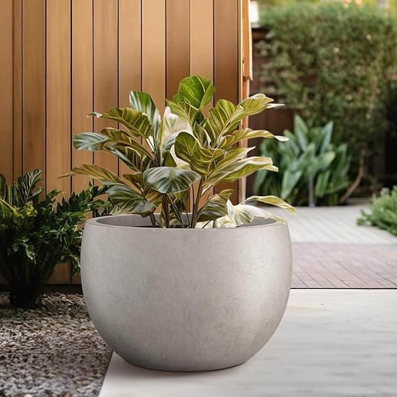 Kante 19.9″ Dia Round Concrete Planter, Outdoor/Indoor Large Bowl Plant Pots with Drainage Hole and Rubber Plug for Garden Patio Balcony Home, Weathered Concrete