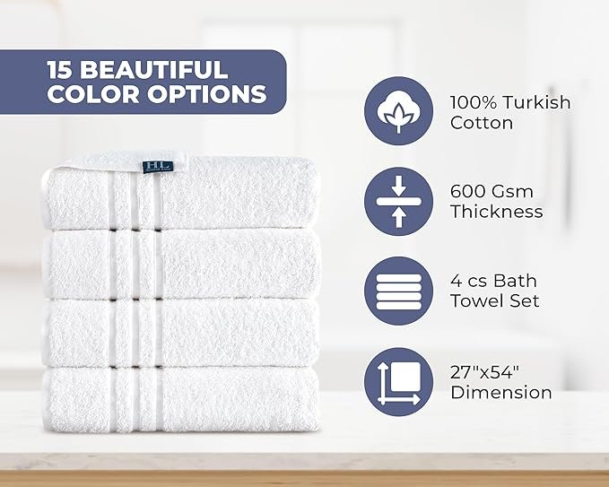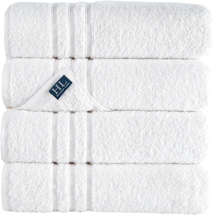 White Bath Towels 4-Pack – 27×54 Inches Soft Lightweight and Highly Absorbent Quick Drying Towels, Premium Quality Perfect for Daily Use 100%